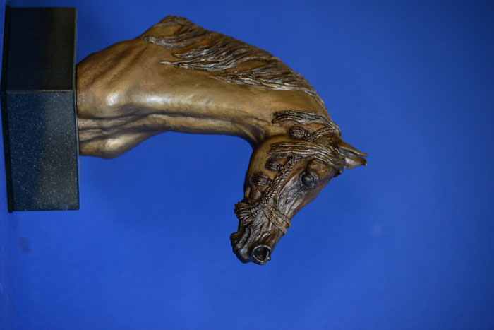 Portrait eines arabischen Pferdes, Bronze in limitierter Auflage von 12 Stück. Ca. 25 cm hoch. Patina von goldbraun bis schwarz.